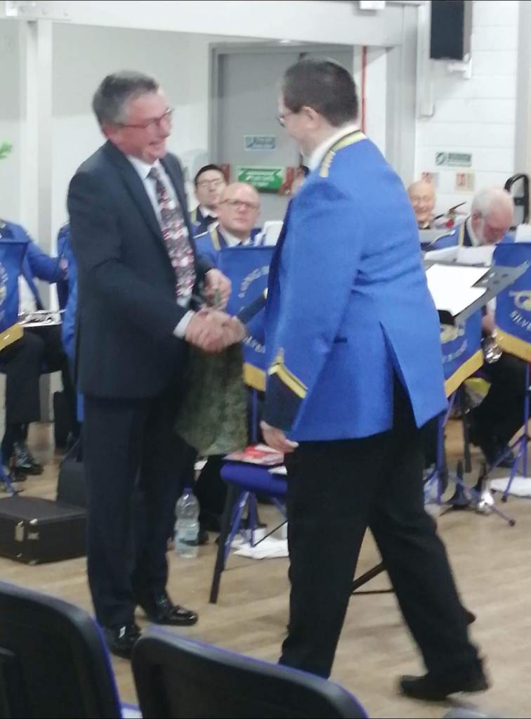 Presentations were made at last nights concert to Nigel for all of the work he has put in to the band and also to his wife Sue, for supporting him during his tenure with the band.